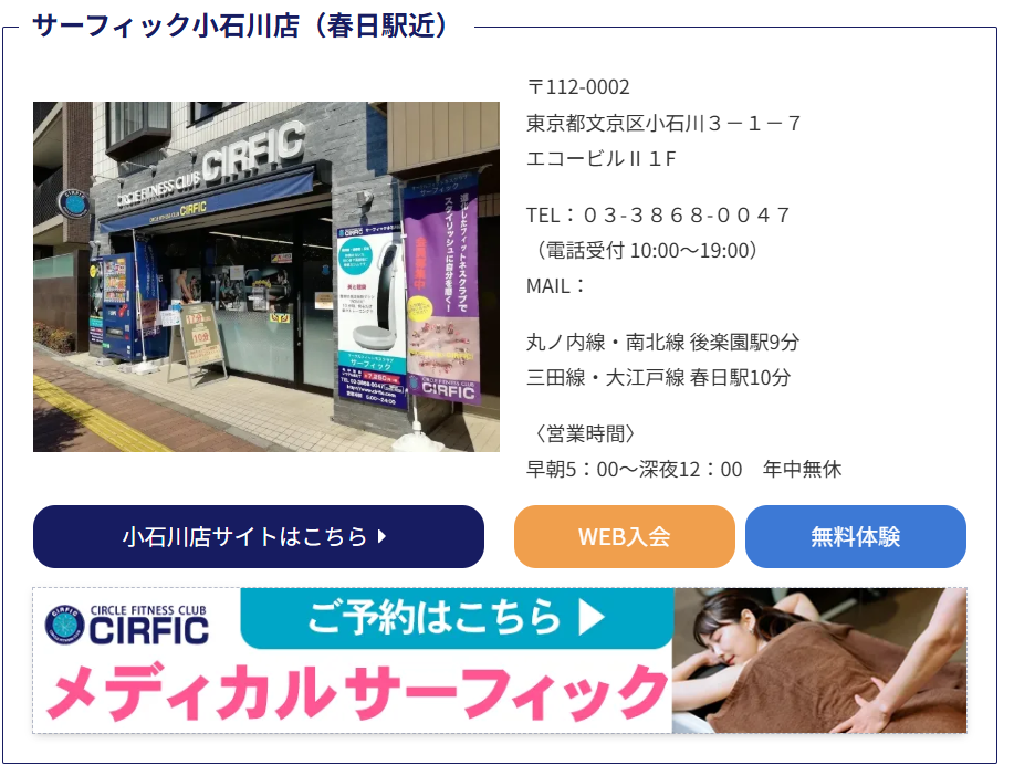 ①無料体験のページを開き小石川店の無料体験ボタンをクリック