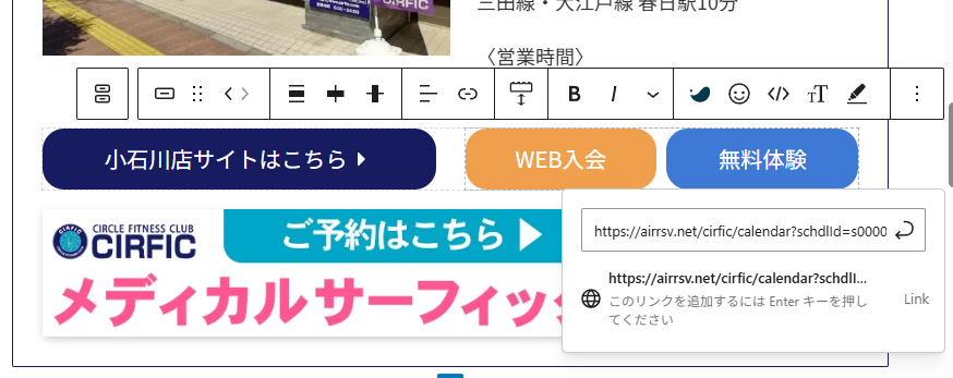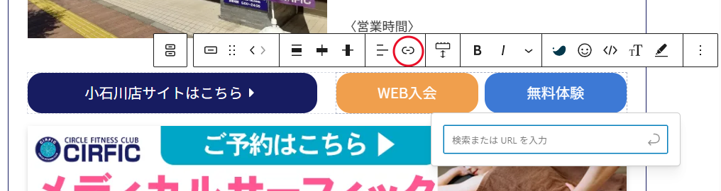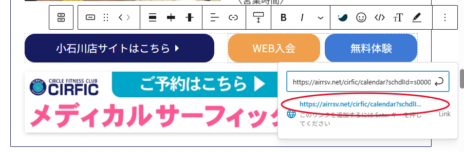 ④新しいリンクを入れると下にリンク先が出てきます、カーソルを合わせると青文字になるのでそれをクリックしリンク先を確定します。